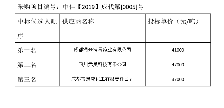 內(nèi)江市污水處理有限責(zé)任公司碳源補充劑和輔助消毒劑招標(biāo)項目(第2包)評標(biāo)結(jié)果公示