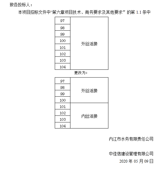 內(nèi)江市水務(wù)有限責任公司PPR給水管及管件采購項目更正公告