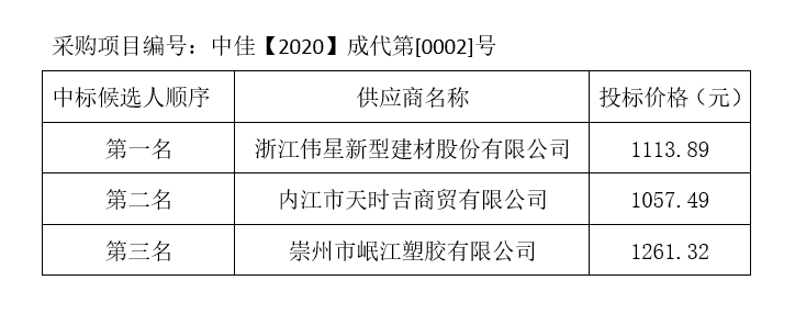 內(nèi)江市水務(wù)有限責(zé)任公司PPR給水管及管件采購項(xiàng)目評(píng)標(biāo)結(jié)果公示