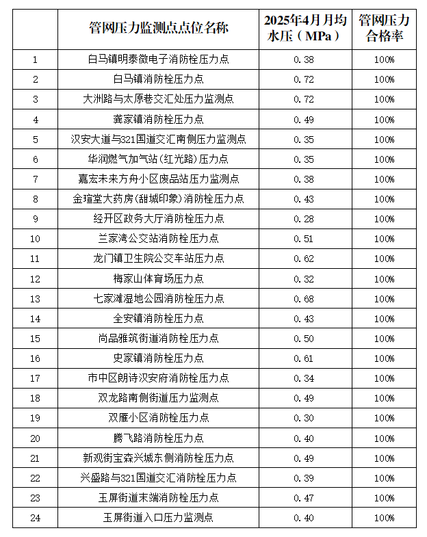 內(nèi)江市水務(wù)有限責(zé)任公司2025年4月管網(wǎng)壓力月報(bào)