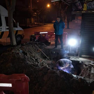 2月2日晚8點(diǎn)40分,接到市民報(bào)漏電話,位于晏家灣車站外的供水主管爆裂,部門立即組織人員趕往現(xiàn)場。經(jīng)查看確認(rèn)為一根DN150供水主管破裂,為了保障居民的正常用水,搶修人員連夜冒雨對供水管道進(jìn)行搶修,經(jīng)過5個小時的搶險(xiǎn)作業(yè),于次日凌晨1點(diǎn)完成搶修任務(wù),保障了該區(qū)域居民正常用水。