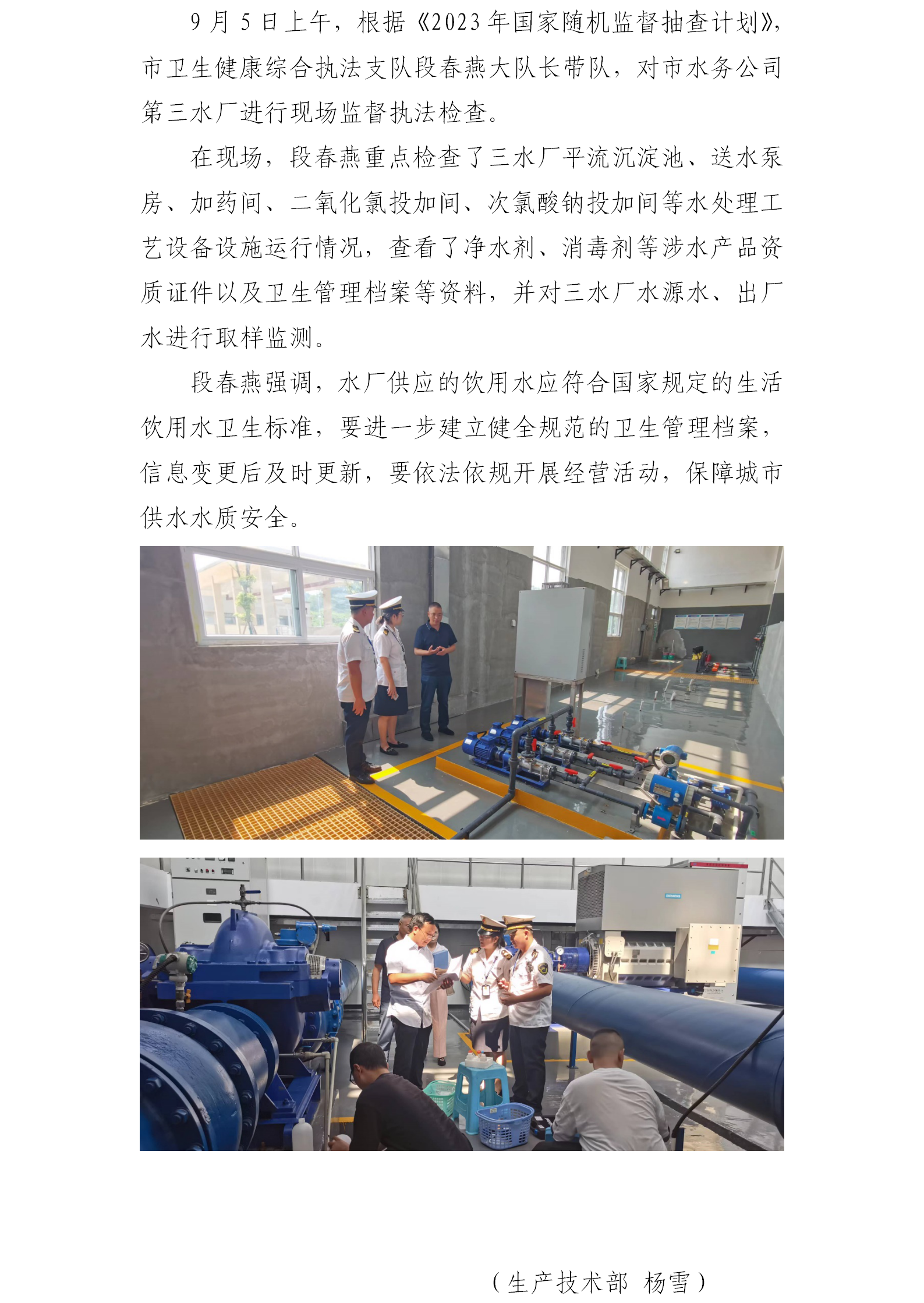 迎接“隨機(jī)”衛(wèi)生執(zhí)法監(jiān)督檢查 確保水質(zhì)安全
