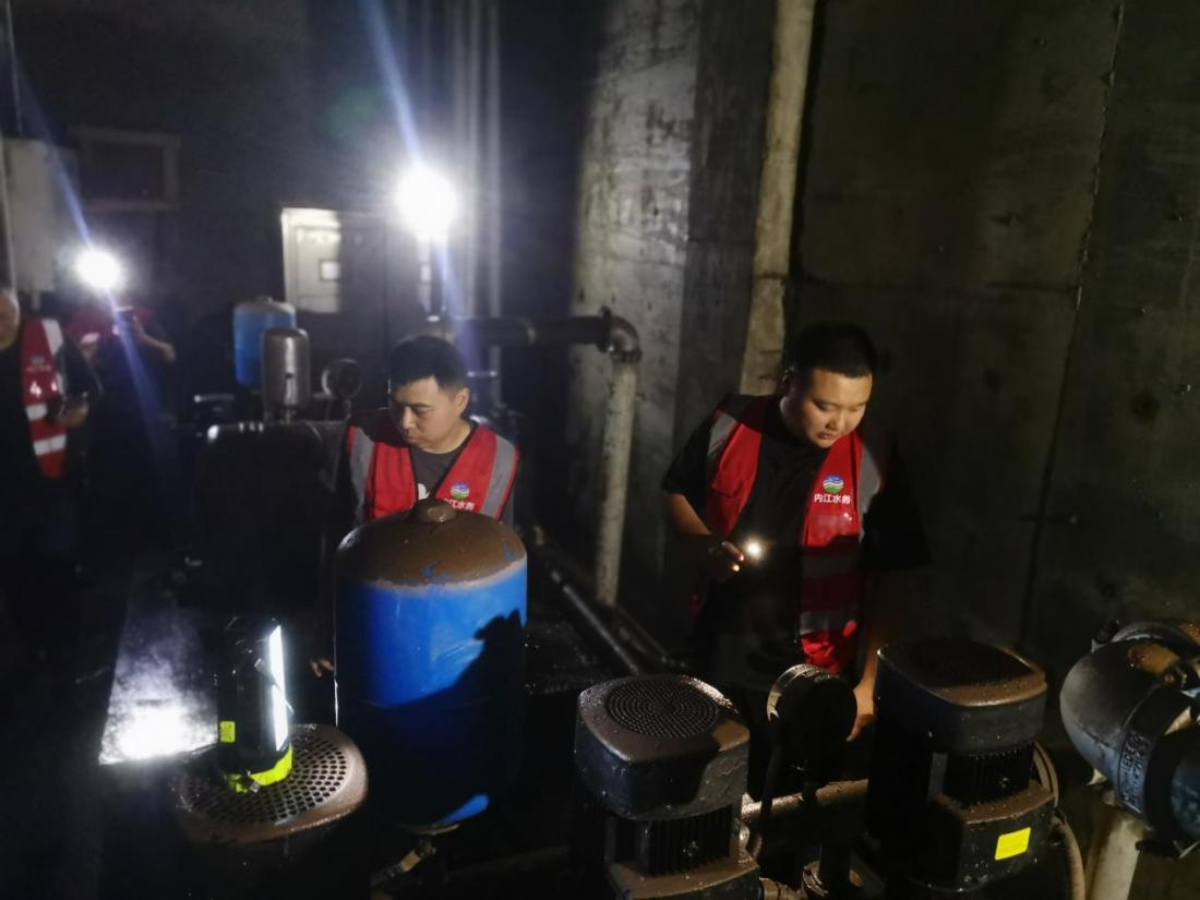 7月15日,內(nèi)江市水務(wù)有限責任公司(以下簡稱市水務(wù)公司)子公司豪鵬二次供水服務(wù)有限責任公司(以下簡稱豪鵬公司)接到該小區(qū)物業(yè)求助后,立即組織二次供水技術(shù)人員前往現(xiàn)場查看受災(zāi)情況。技術(shù)人員在對二次供水設(shè)施受損情況進行評估后,向物業(yè)公司及社區(qū)管理人員提出二次供水設(shè)施維修指導(dǎo)意見,并幫助小區(qū)物業(yè)制定應(yīng)急供水搶險及設(shè)備搶修方案,確保第一時間恢復(fù)居民供水。同時,豪鵬公司立即聯(lián)動市水務(wù)公司客戶服務(wù)部,在受災(zāi)小區(qū)內(nèi)設(shè)置了臨時取水點,以緩解居民用水困難。