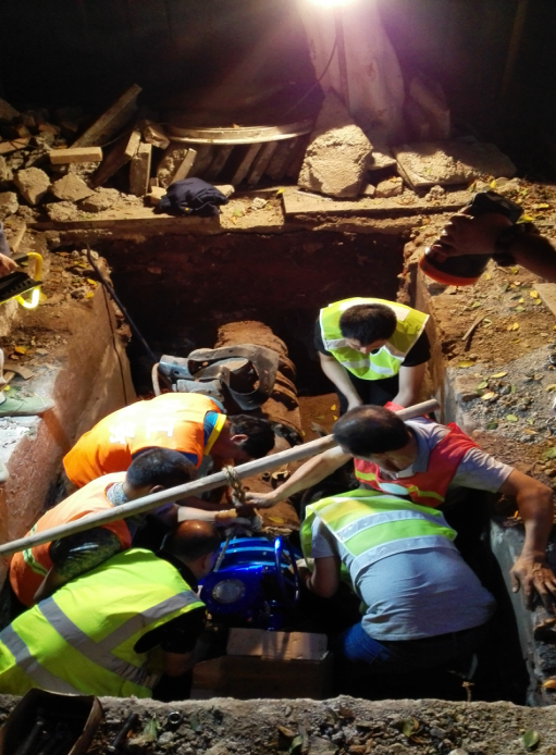 在管網(wǎng)規(guī)劃管理部、物資供應(yīng)部、豪盛管道安裝公司及工會(huì)等部門的緊密配合下,5月17日晚22時(shí),管網(wǎng)運(yùn)行部按改造實(shí)施方案對(duì)平安路兩側(cè)3臺(tái)蝶閥進(jìn)行了更換。為縮短停水時(shí)間,施工前管網(wǎng)運(yùn)行部組織召開(kāi)了兩次施工分析會(huì),制定了工作方案,并對(duì)施工現(xiàn)場(chǎng)提前組織開(kāi)挖,設(shè)置安全圍擋、照明等安全設(shè)施,為順利實(shí)施蝶閥更換做好充分準(zhǔn)備。施工中,維修人員們克服深夜疲勞、操作場(chǎng)地狹小等不利因素,特別是楊孝成,鄧軼峰、劉超、程建軍等冒著高溫天氣及氧焊的熱浪,在弱電管線交錯(cuò)縱橫的狹窄空間里拆卸生銹螺栓,安裝更新蝶閥。經(jīng)過(guò)7個(gè)多小時(shí)連續(xù)作業(yè),在18日凌晨5時(shí)順利完成此次改造工作,比預(yù)期通水時(shí)間提前1個(gè)小時(shí),保證了周邊用戶正常用水。