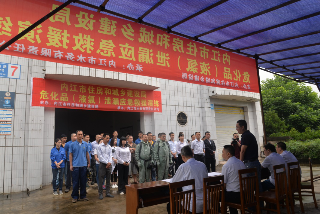 2017年6月16日上午,為做好?;钒踩芾砉ぷ?,保安全供水,公司在二水廠成功進行液氯泄漏應(yīng)急救援演練。本次演練,由市住建局主辦、公司承辦,公司黨委書記、董事長、總經(jīng)理寧印福任總指揮,總工程師蒲彬任現(xiàn)場總指揮,生產(chǎn)技術(shù)部組織,二水廠具體實施,共計 50多人參與演練。