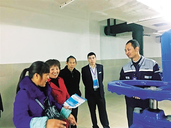 二次供水是什么?對居民用水有什么影響?平時(shí)要如何維護(hù)?如何繳納二次供水服務(wù)費(fèi)?活動過程中,二次供水公司管理人員在水泵房內(nèi)詳細(xì)向居民介紹二次供水設(shè)施的基本構(gòu)造和原理,并耐心解答用戶提出的問題。